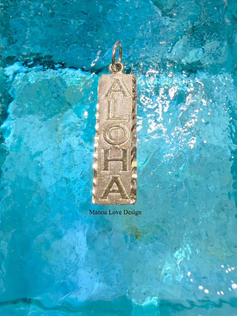 14k solid gold 90s vintage ALOHA diamond cut pendant