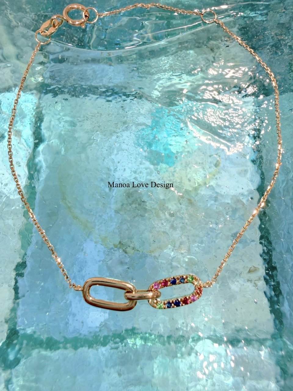 14k solid gold rainbow color sapphire Paperclip bracelet
